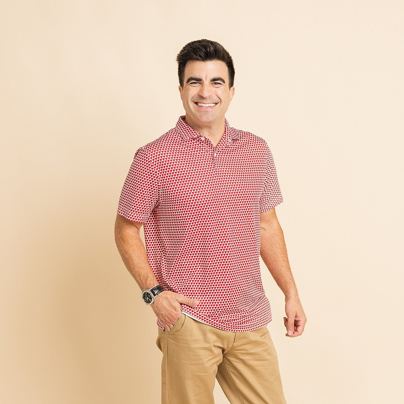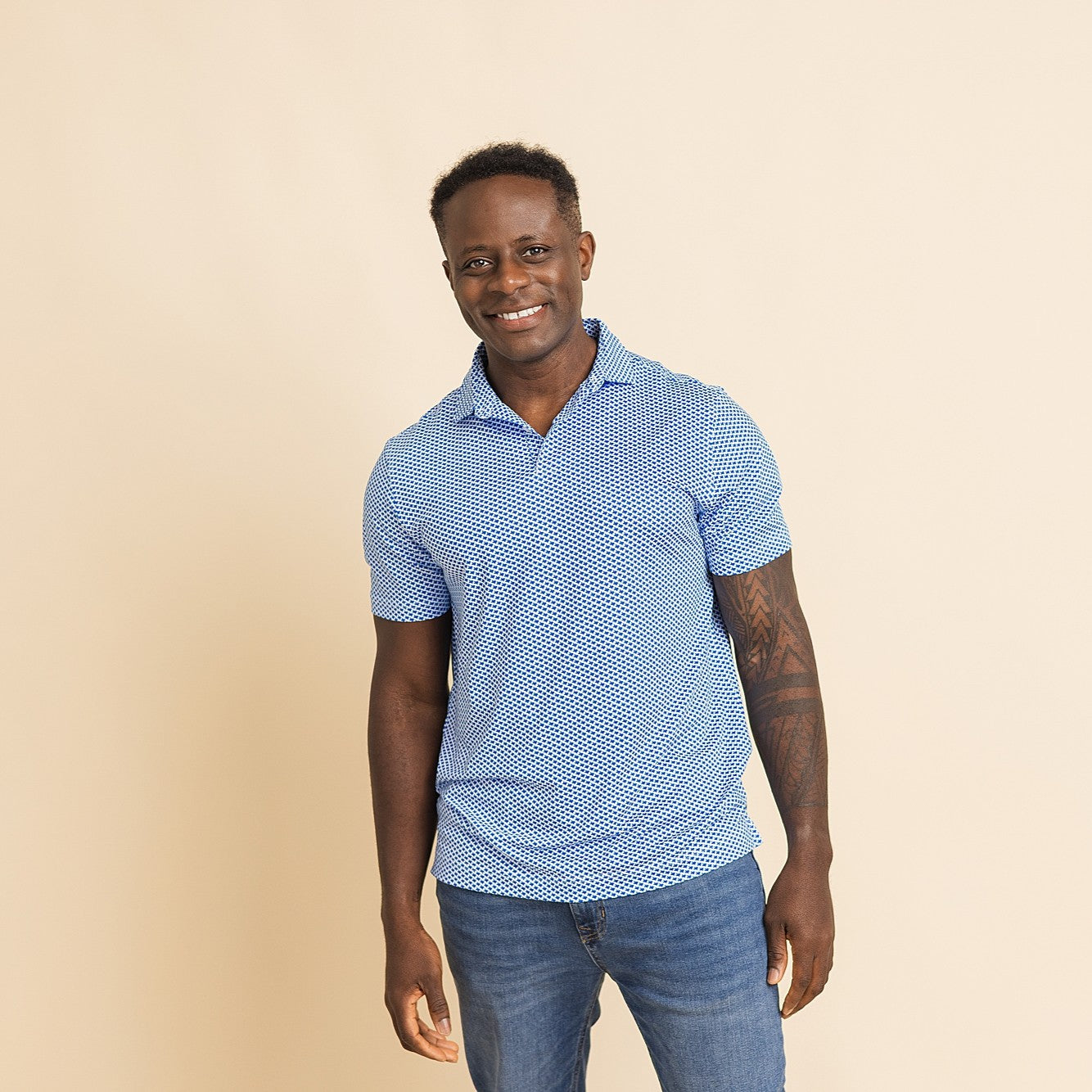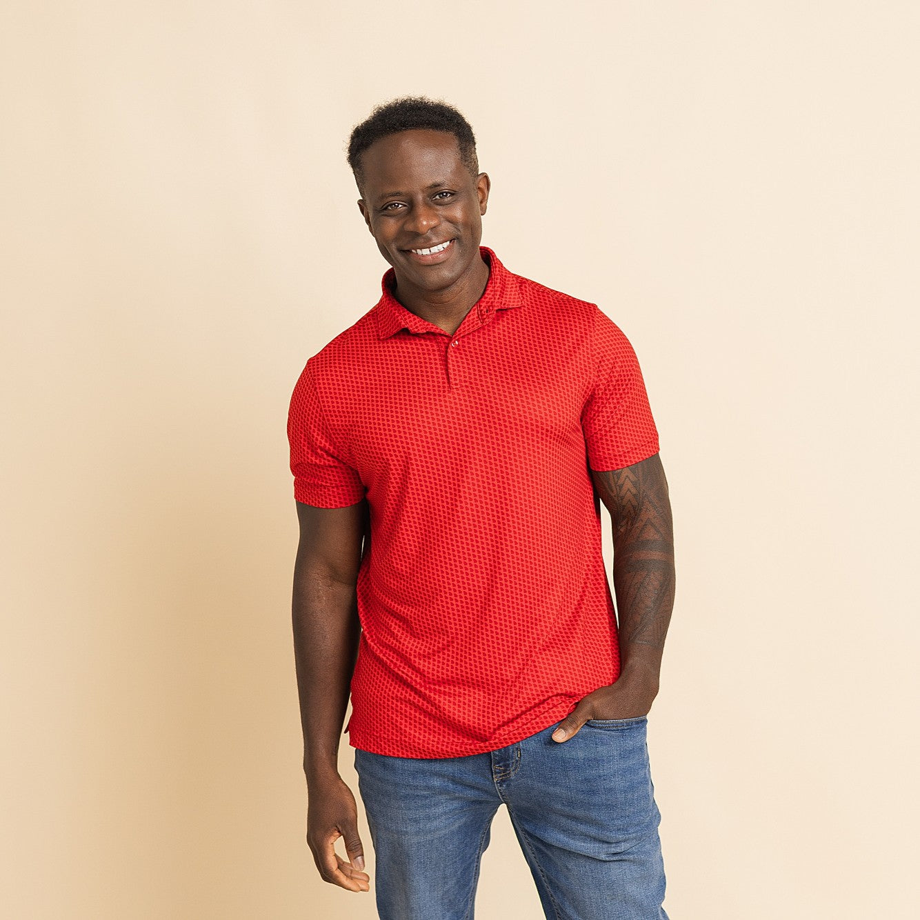 Our sleeve length is carefully crafted to fit men of most heights, and the overall length looks good either tucked or untucked. Guys that are on the shorter range will find our sleeves are short enough to stay out of the way of their golf swing, and the overall length won't look like they're wearing a dress when untucked. Guys on the taller range will still find the overall length to be adequate for wearing it untucked, and our sleeve length to be appropriate for wearing in more professional settings like at the office.